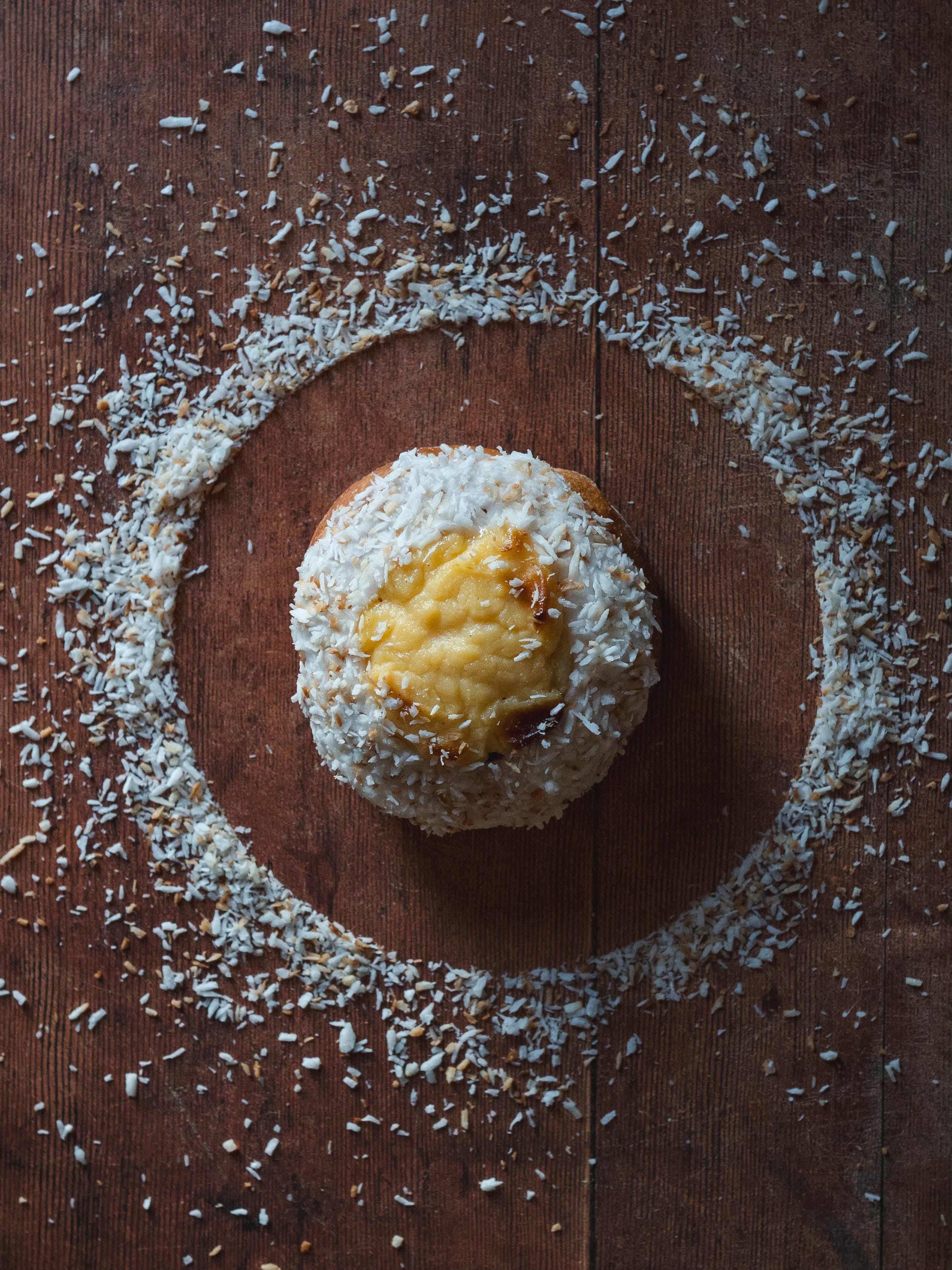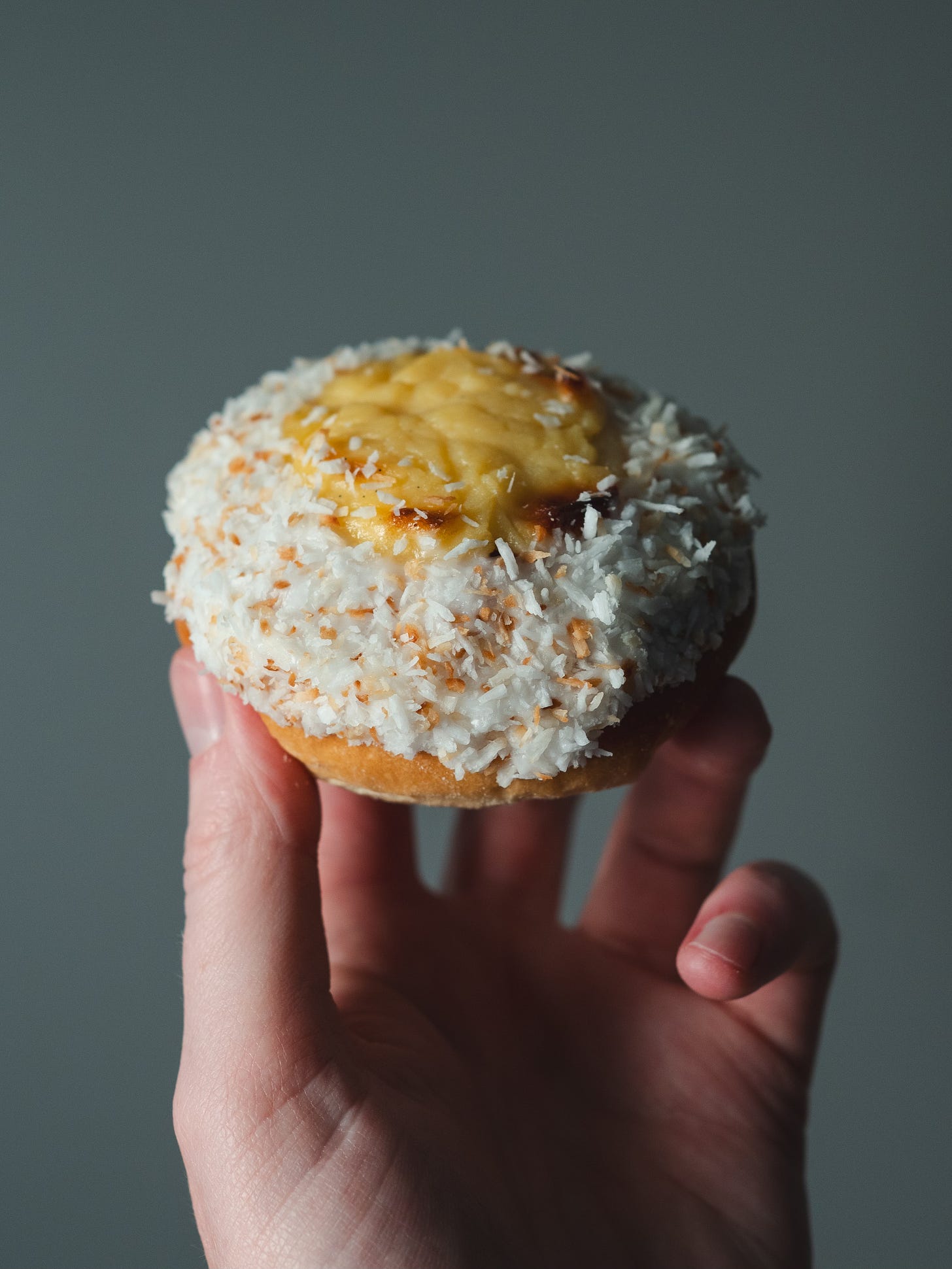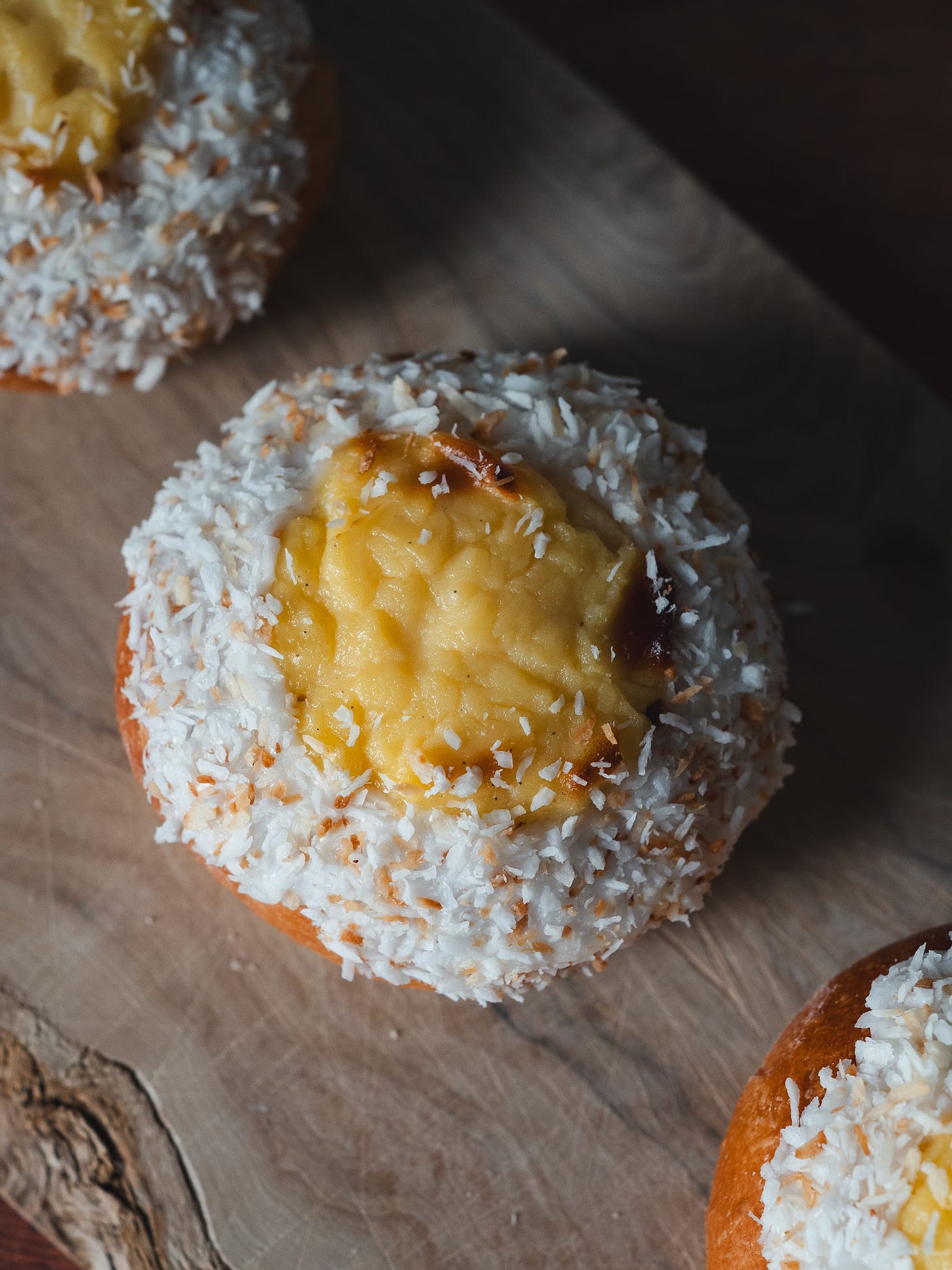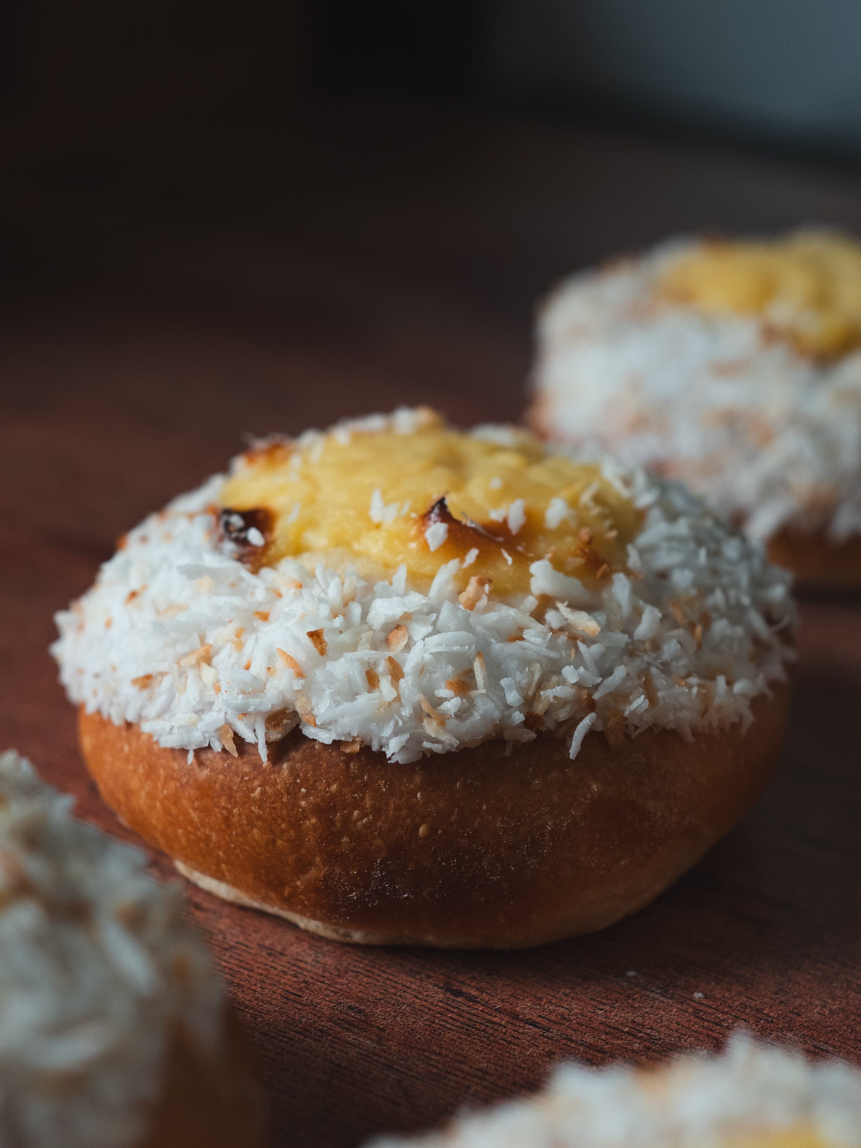 The skoleboller, or school bun, is a Norwegian classic. They are a soft, enriched roll filled with vanilla custard, topped with icing and then dipped in toasted desiccated coconut. Traditionally, they’re tucked into lunchboxes or handed out at school, which makes me wish that I went to school in Norway.
