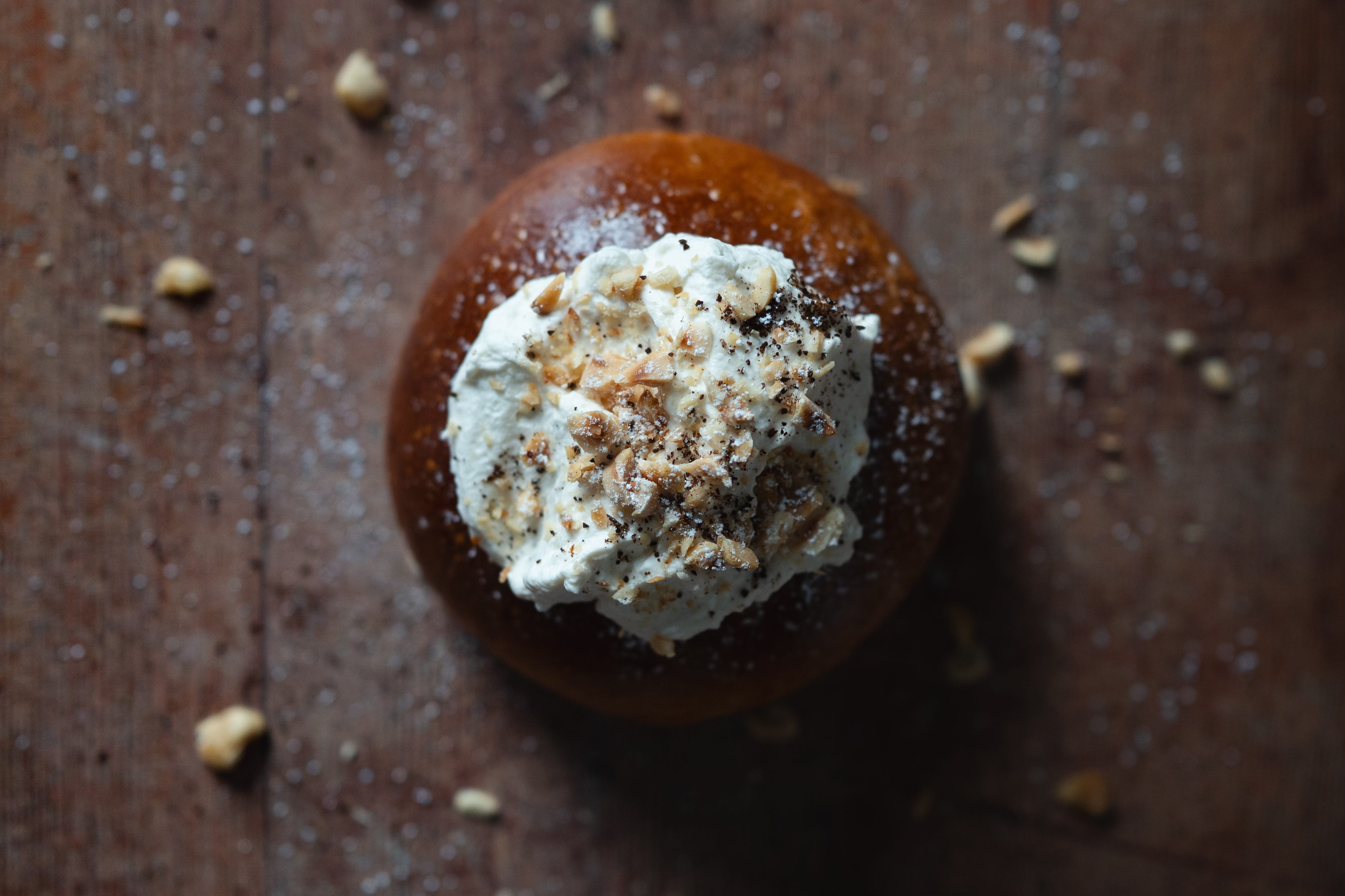 Out of the oven in all their golden, spherical, doughy goodness - it was time to set to work on finishing the praline and espresso whipped cream.