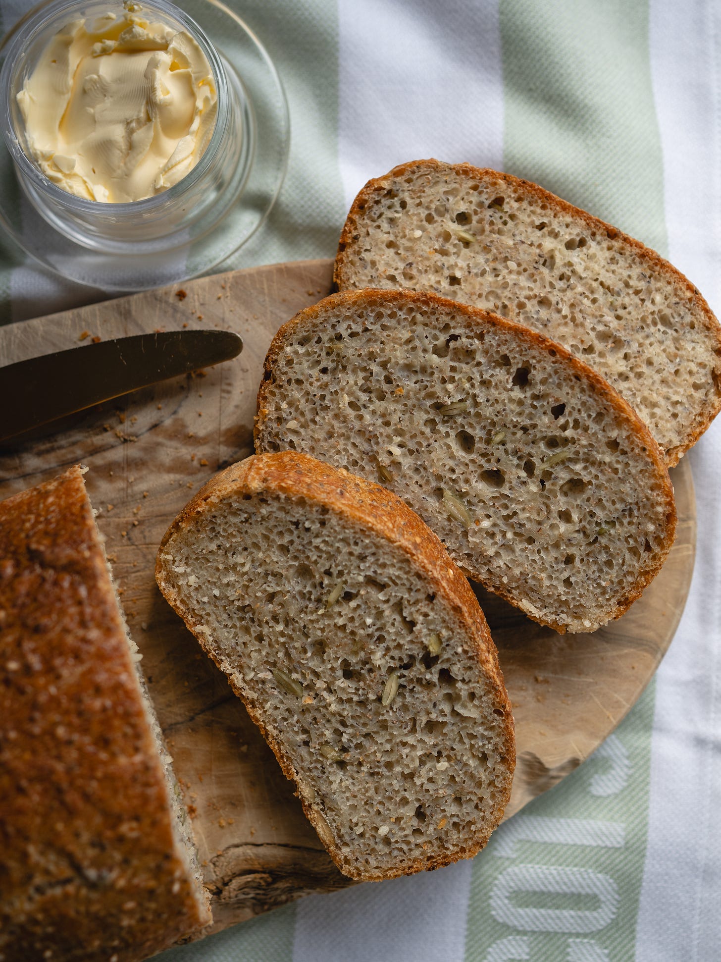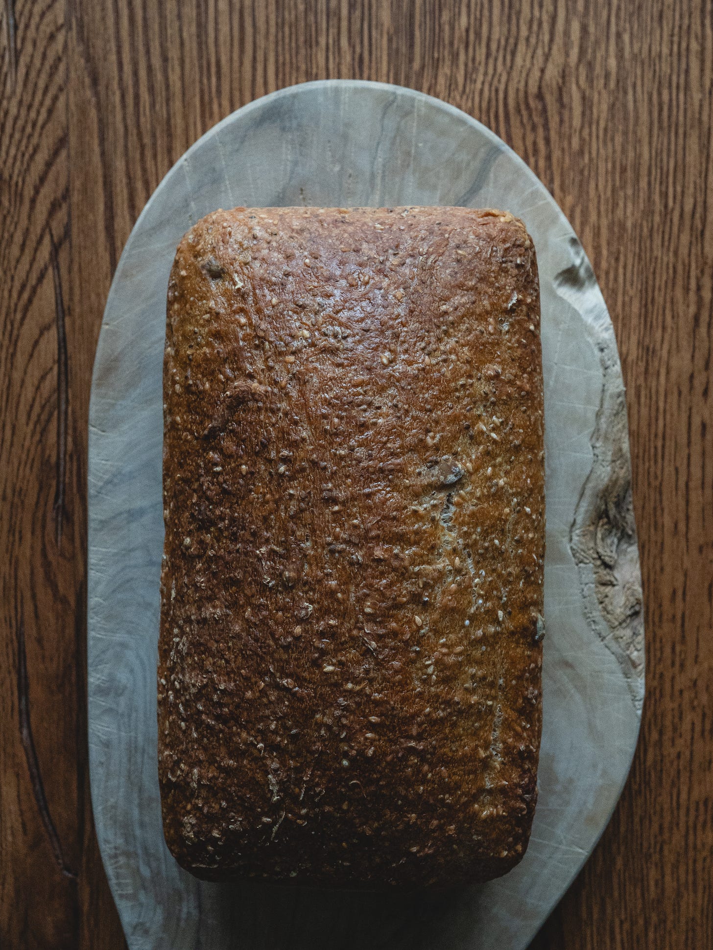 In hindsight, I think swapping linseeds for chia seeds probably didn’t help. Chia seeds form a gel when they absorb liquid, which seems to have interfered with the gluten development and made the dough much softer and harder to shape. Or so Google tells me! Lesson noted…