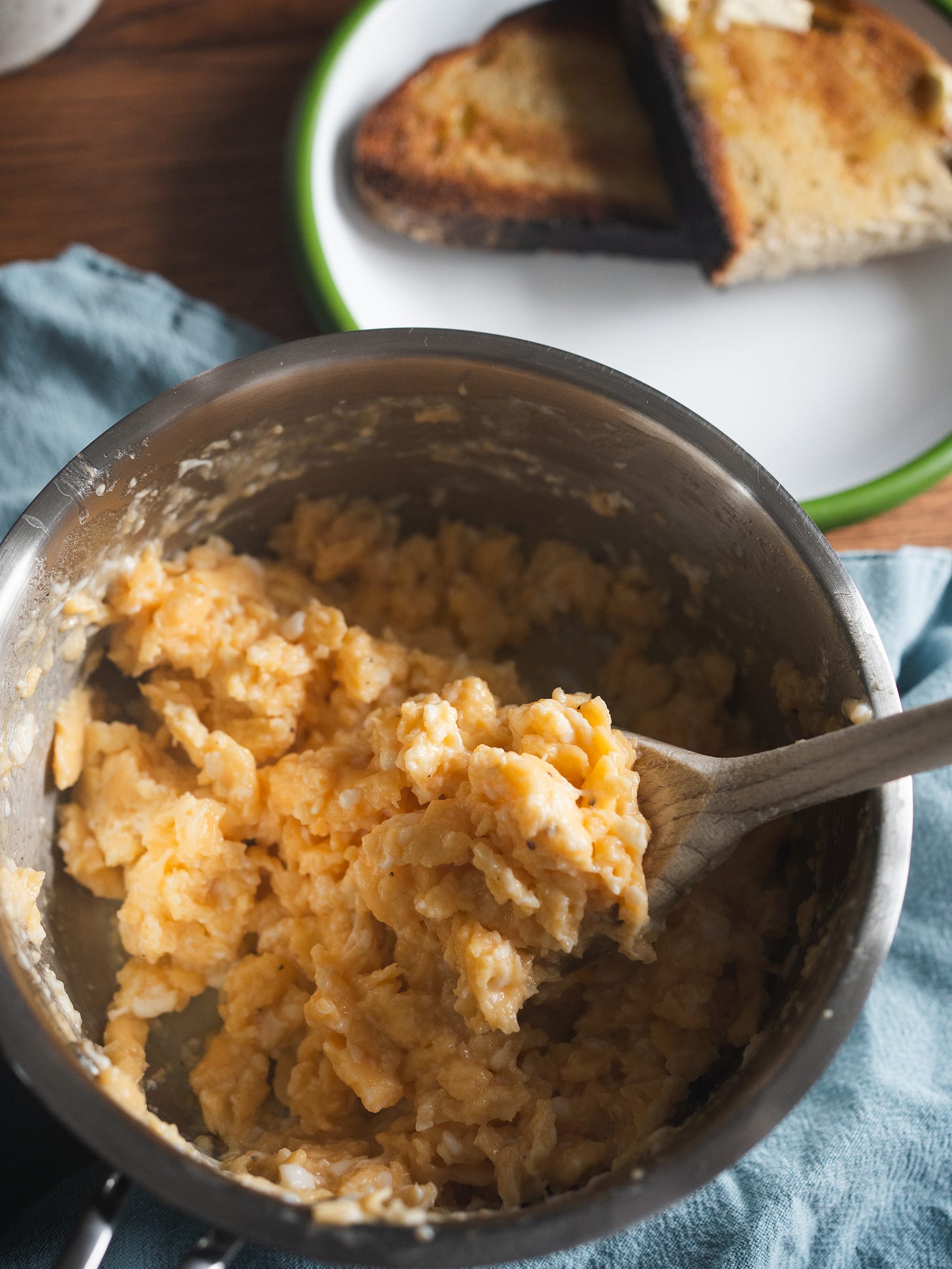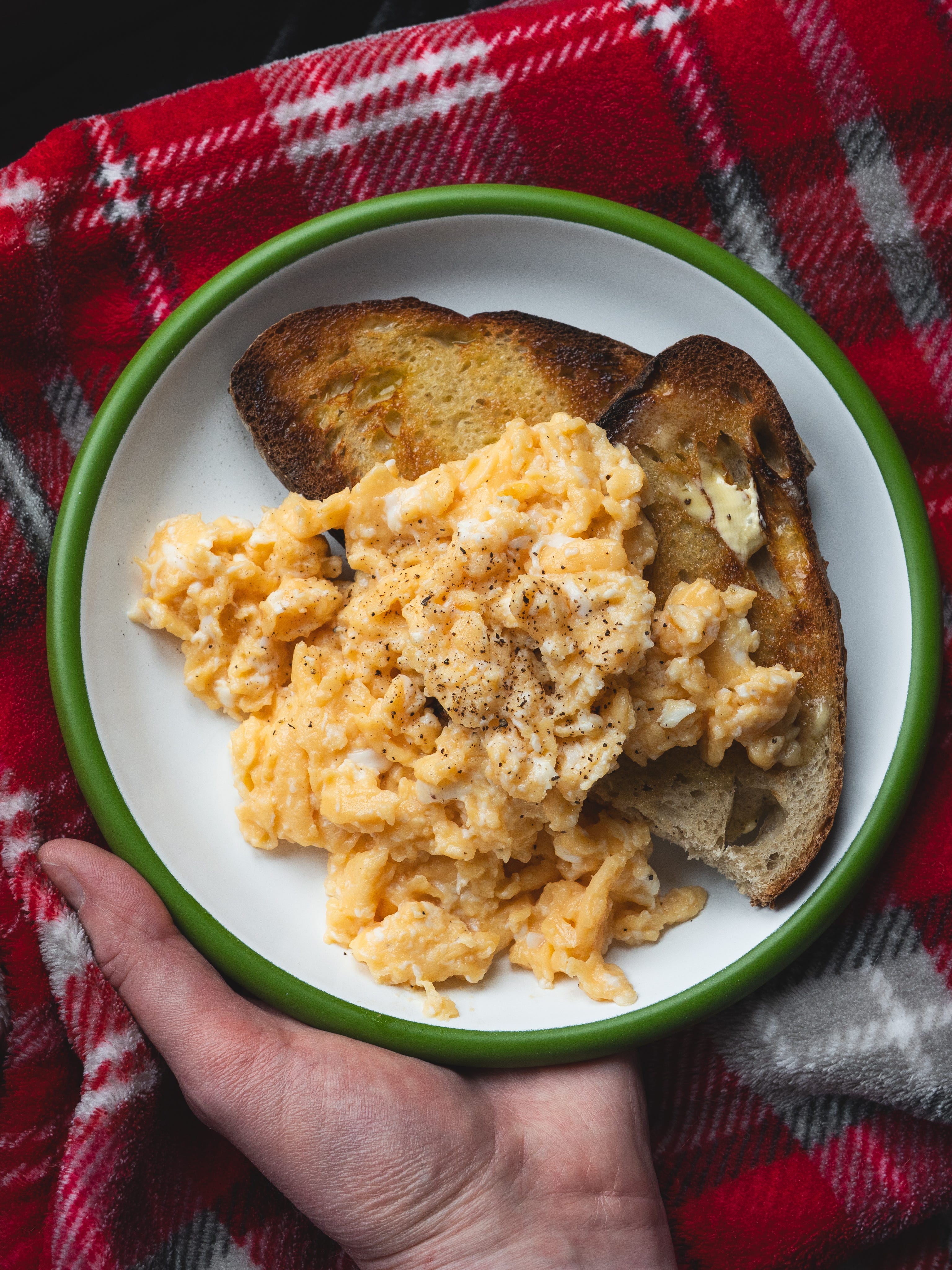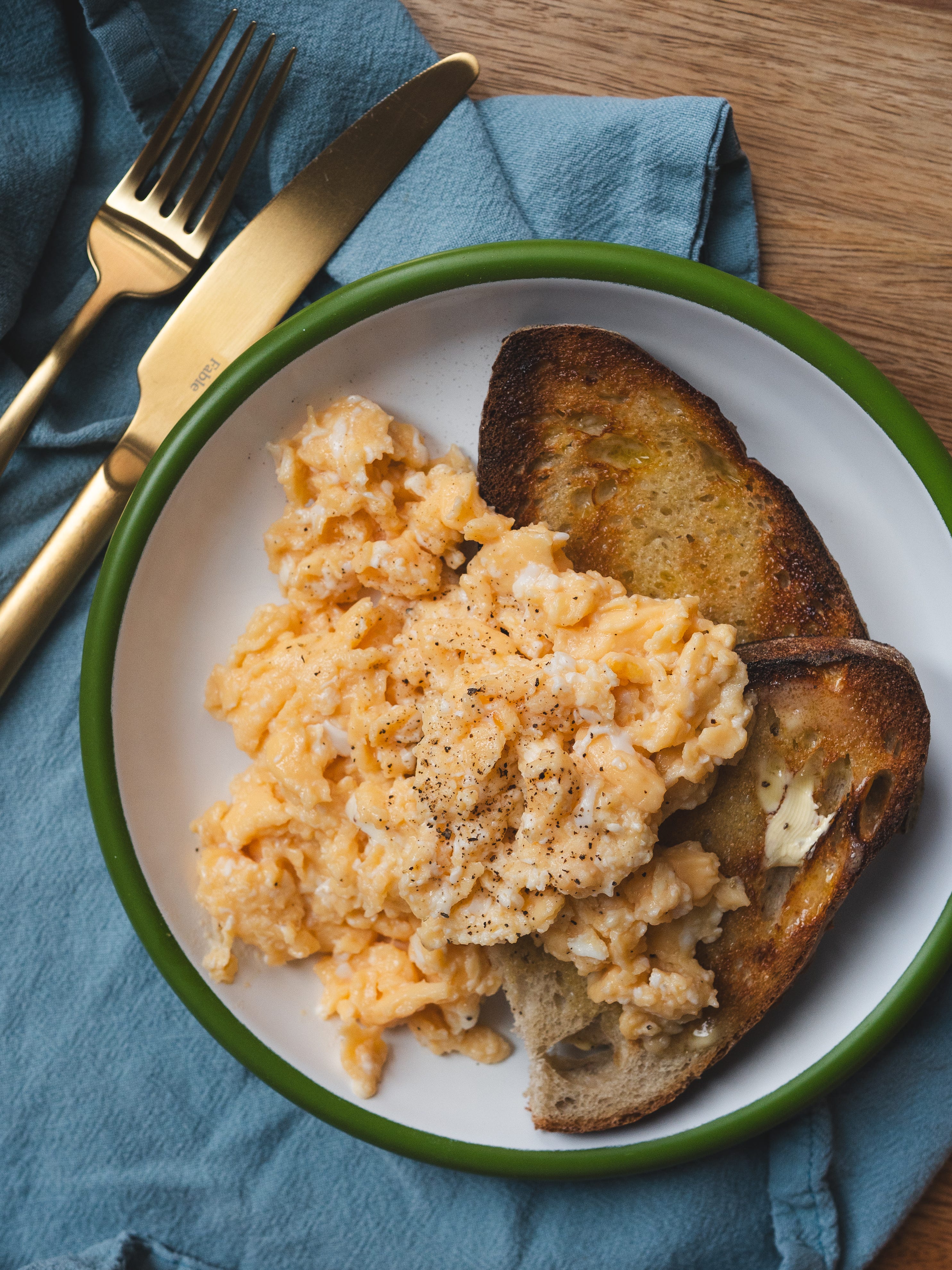 I’ll admit I still had slight (and excuse the term) snotty egg anxiety, so I probably pushed them a bit too far. But even slightly overdone, they were bloody good. After making real scrambled eggs like this, there’s no going back for me.