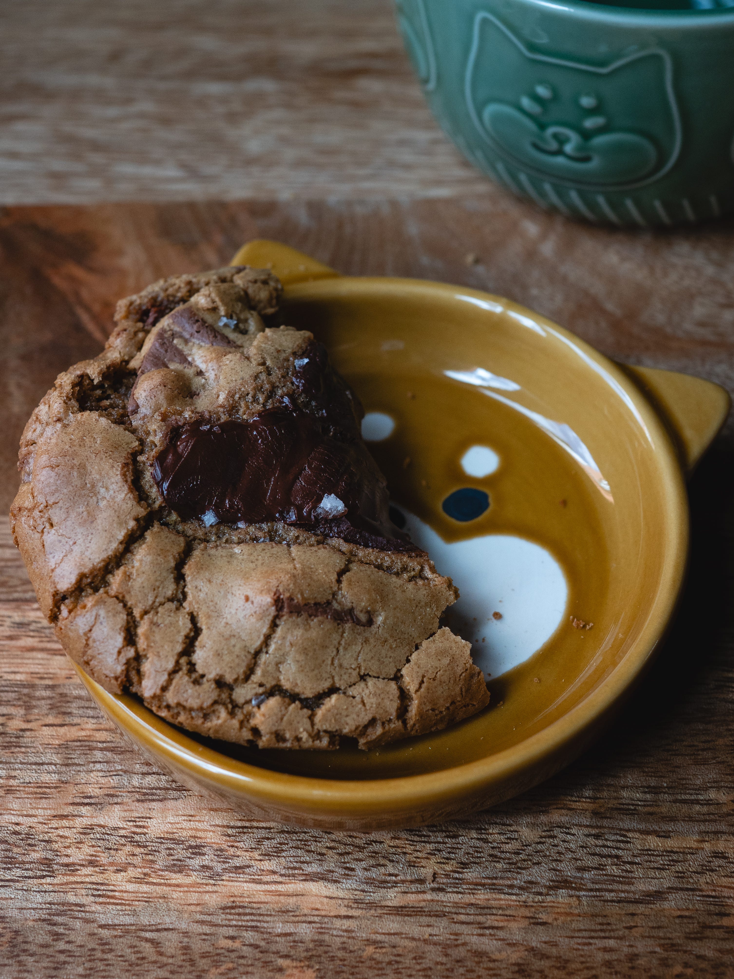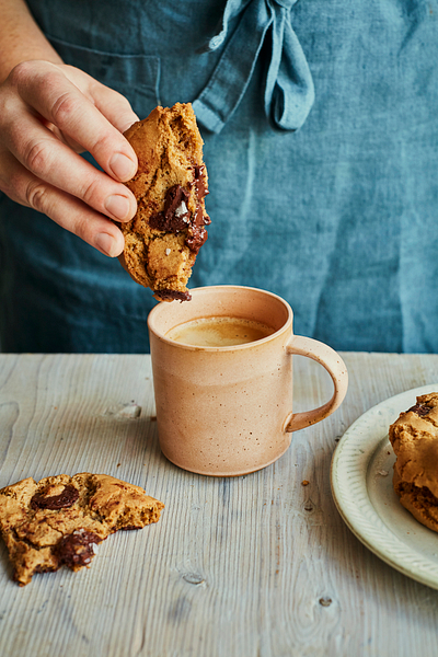 I fancied a quick and easy bake, so these olive oil chocolate cookies it was. Made with a generous glug of extra virgin olive oil rather than butter, three types of sugar and a whole lot of dark chocolate, you’ve got yourself a cookie that’s chewy and indulgent in the centre, with a snap and crunch around the edges.