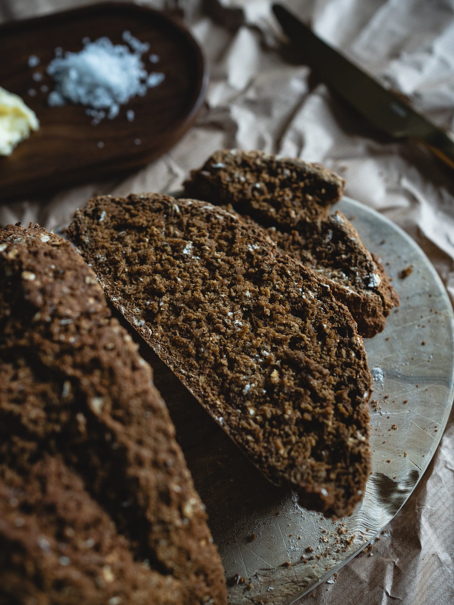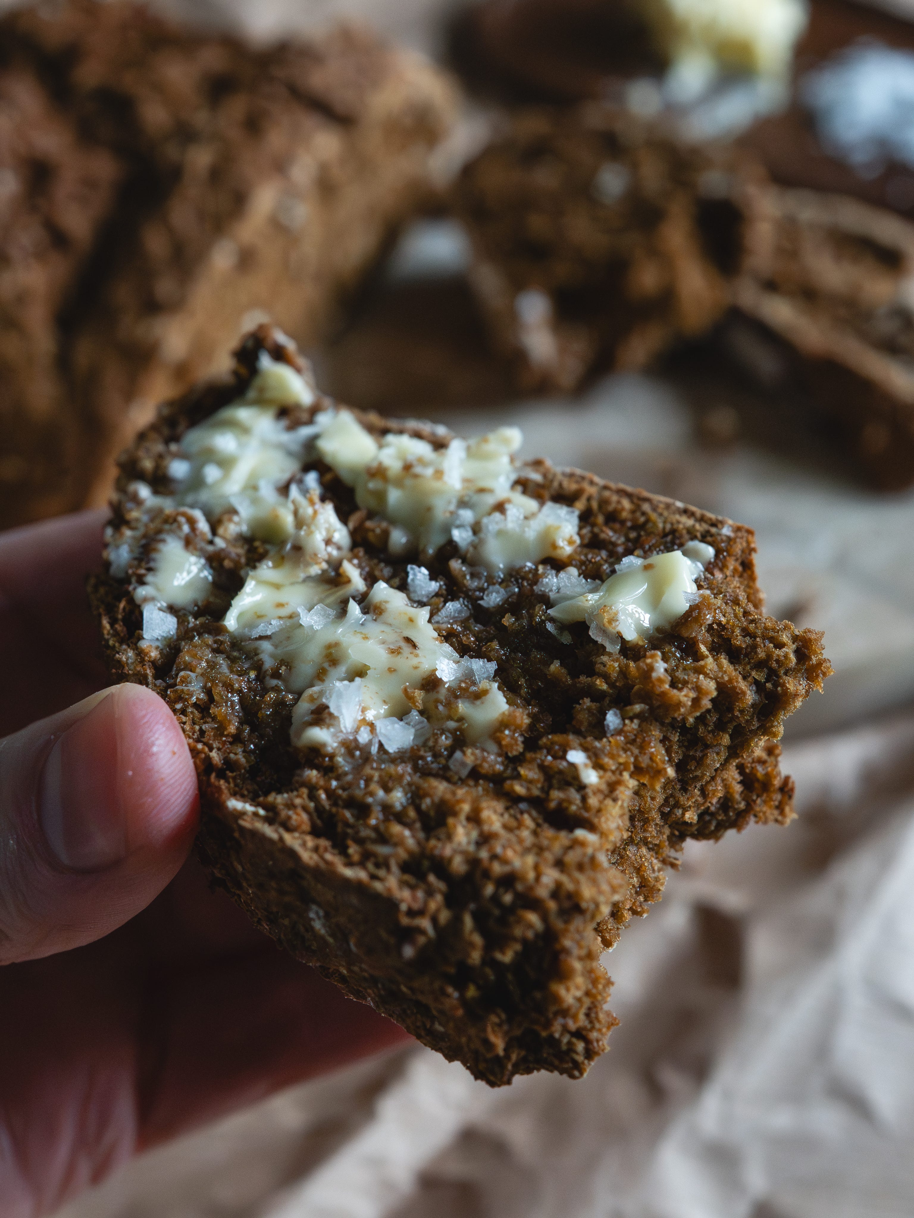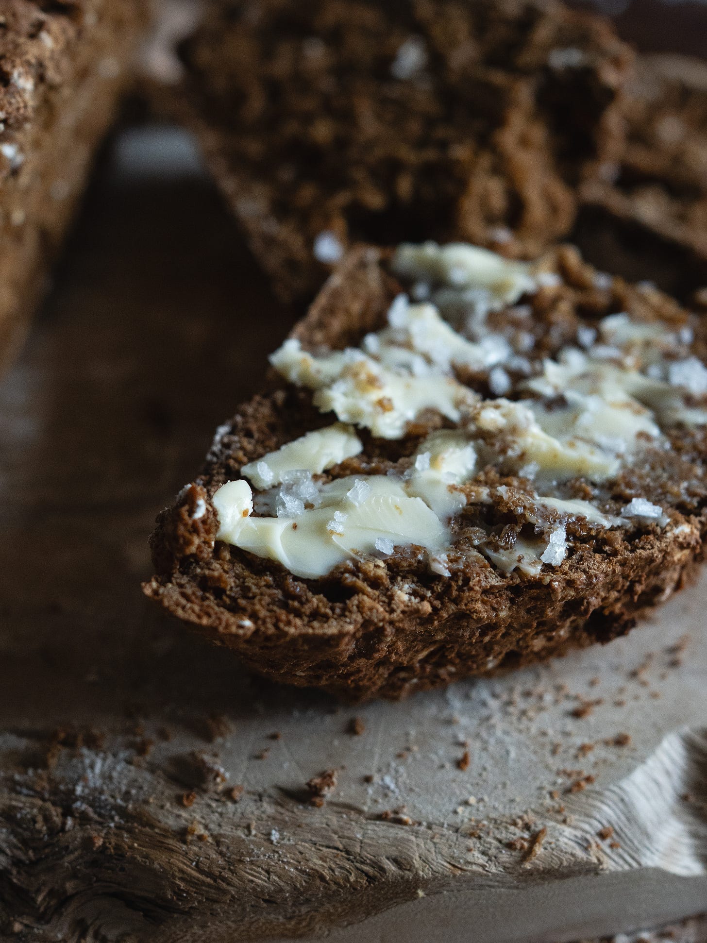 Maybe it’s growing up on a farm, but bread like this just feels like home. You just can’t beat a sweet, malty, beautifully rustic loaf with a dense crumb. Sliced or torn, smothered in melting butter and topped with a generous dusting of sea salt flakes.
