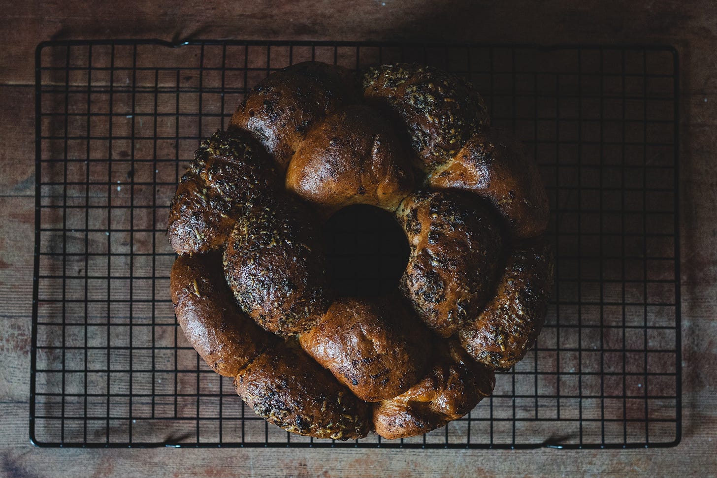 The wreath base was something I sort of made up on the fly. I was originally going to go with a plait, which is what I made last year - but I’d seen a version of this twist with smaller buns before and thought I’d give it a go. Basically you roll out your dough flat, add the filling and then roll it into a log - where you then slice it lengthways, twisting the two strands and bringing them together into a wreath, sealing the ends.