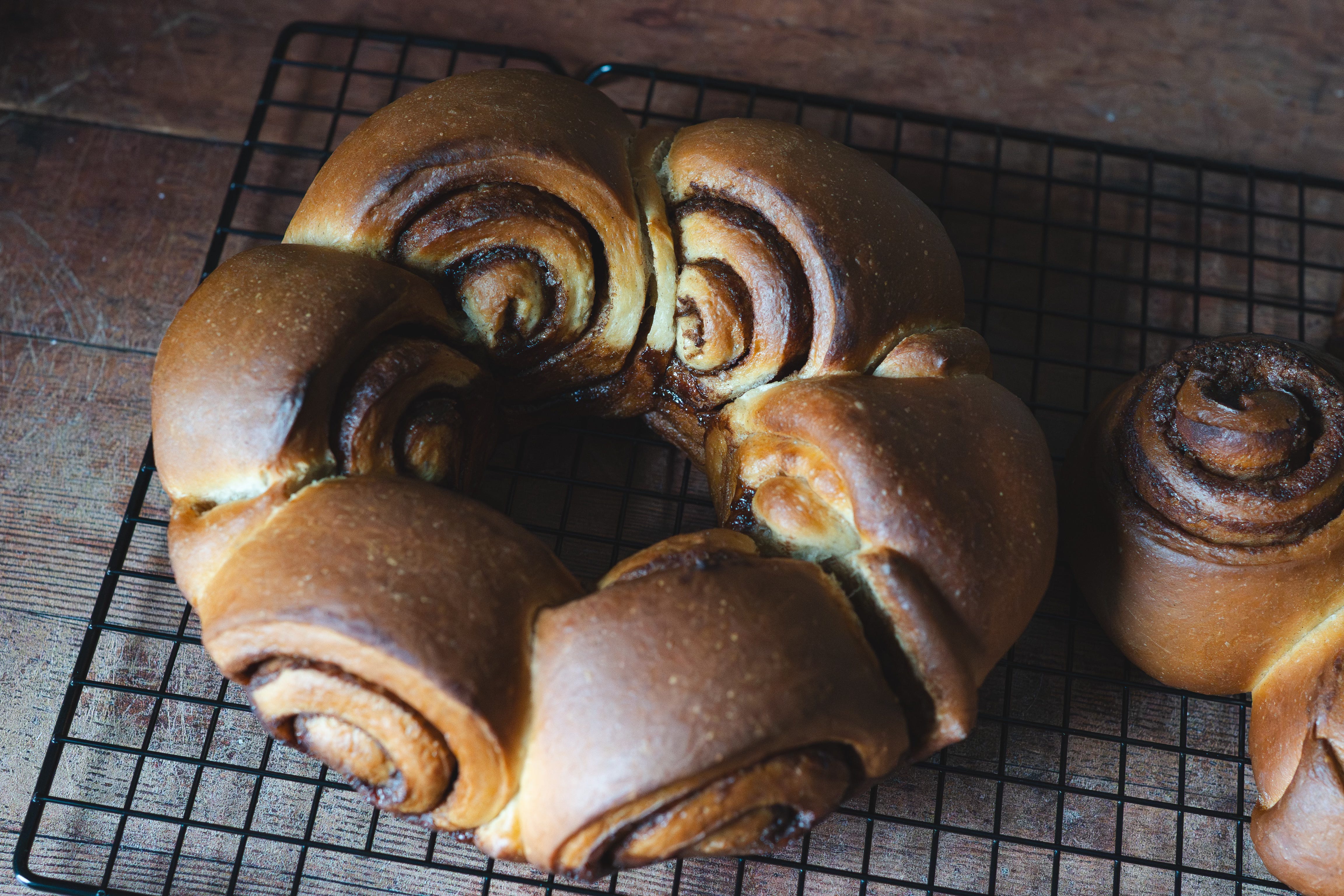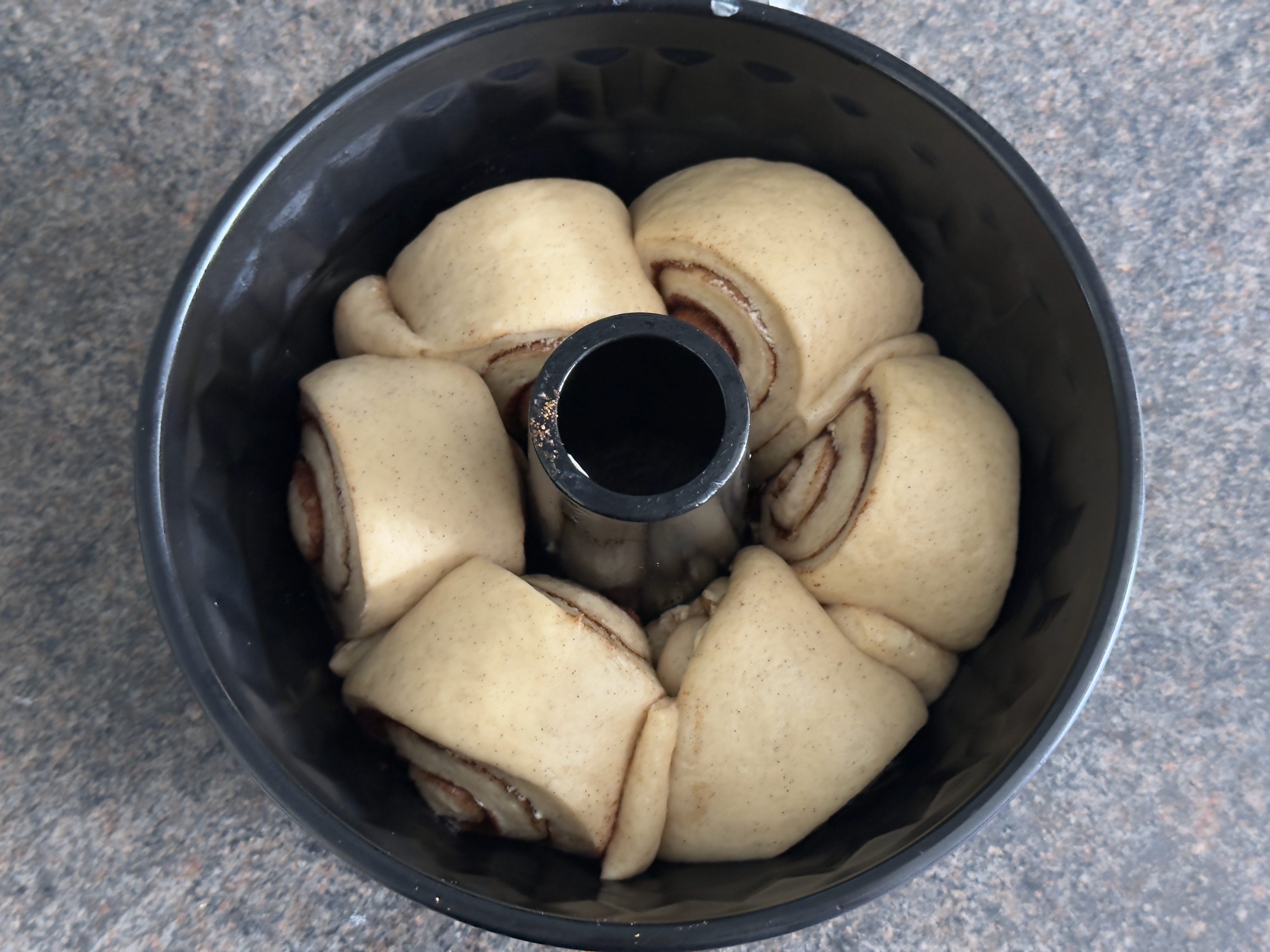 For the cinnamon buns, I’d seen Tom bake his with the spirals facing outwards, so I wanted to try the same. The bundt tin came in handy again for shaping, and I felt pretty confident with how these were going to turn out.