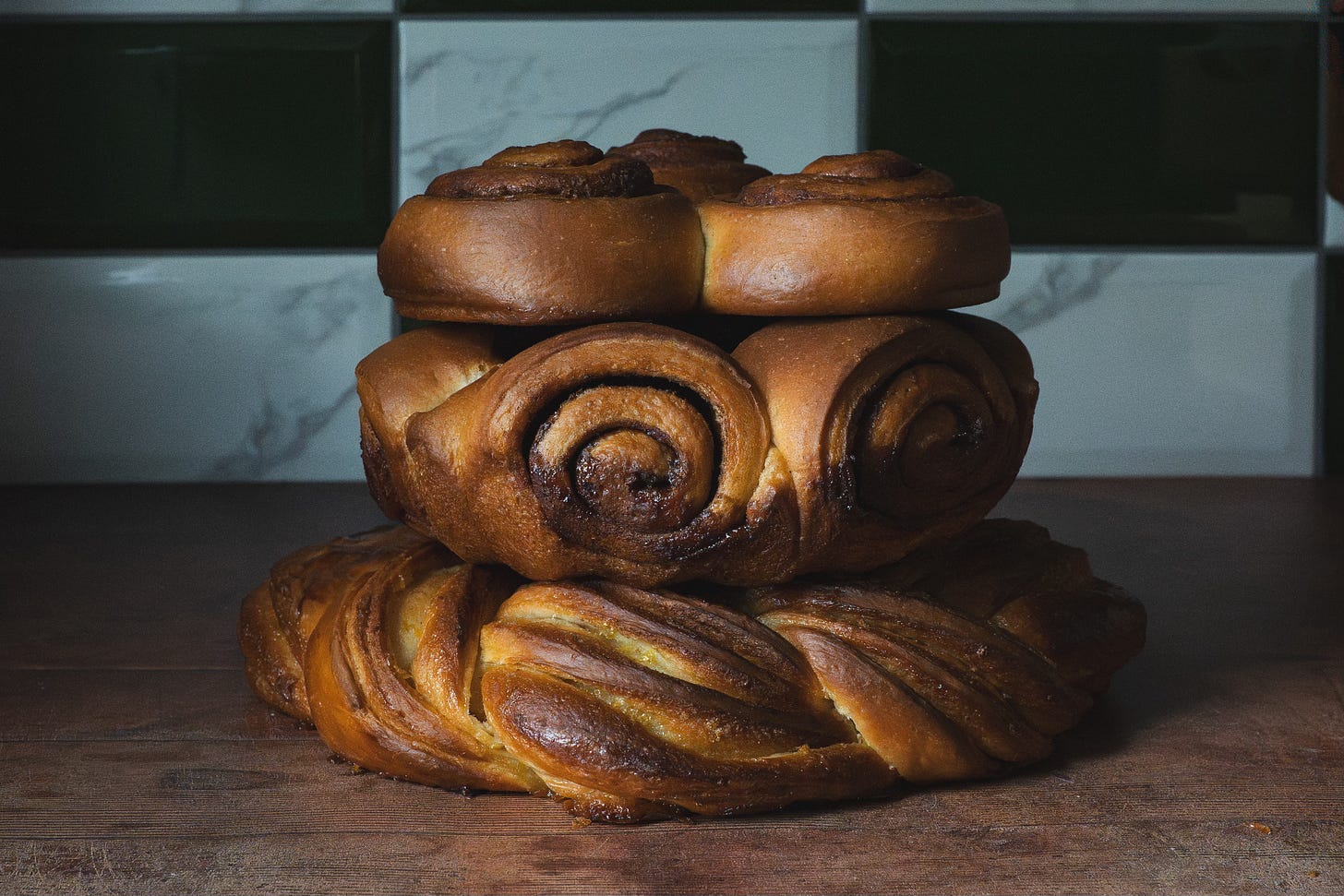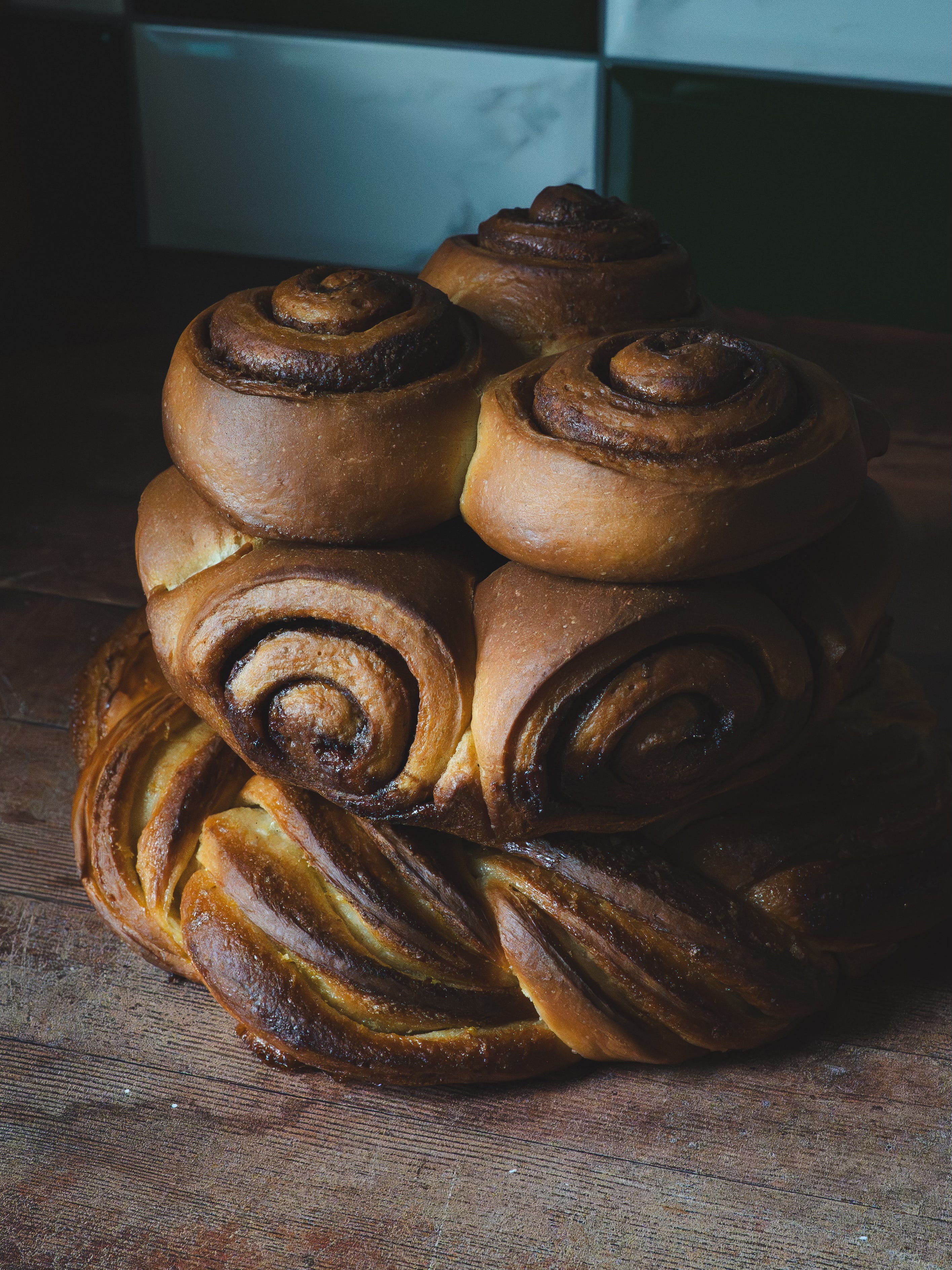 Middle layer: Cinnamon buns, cardamom in the dough.