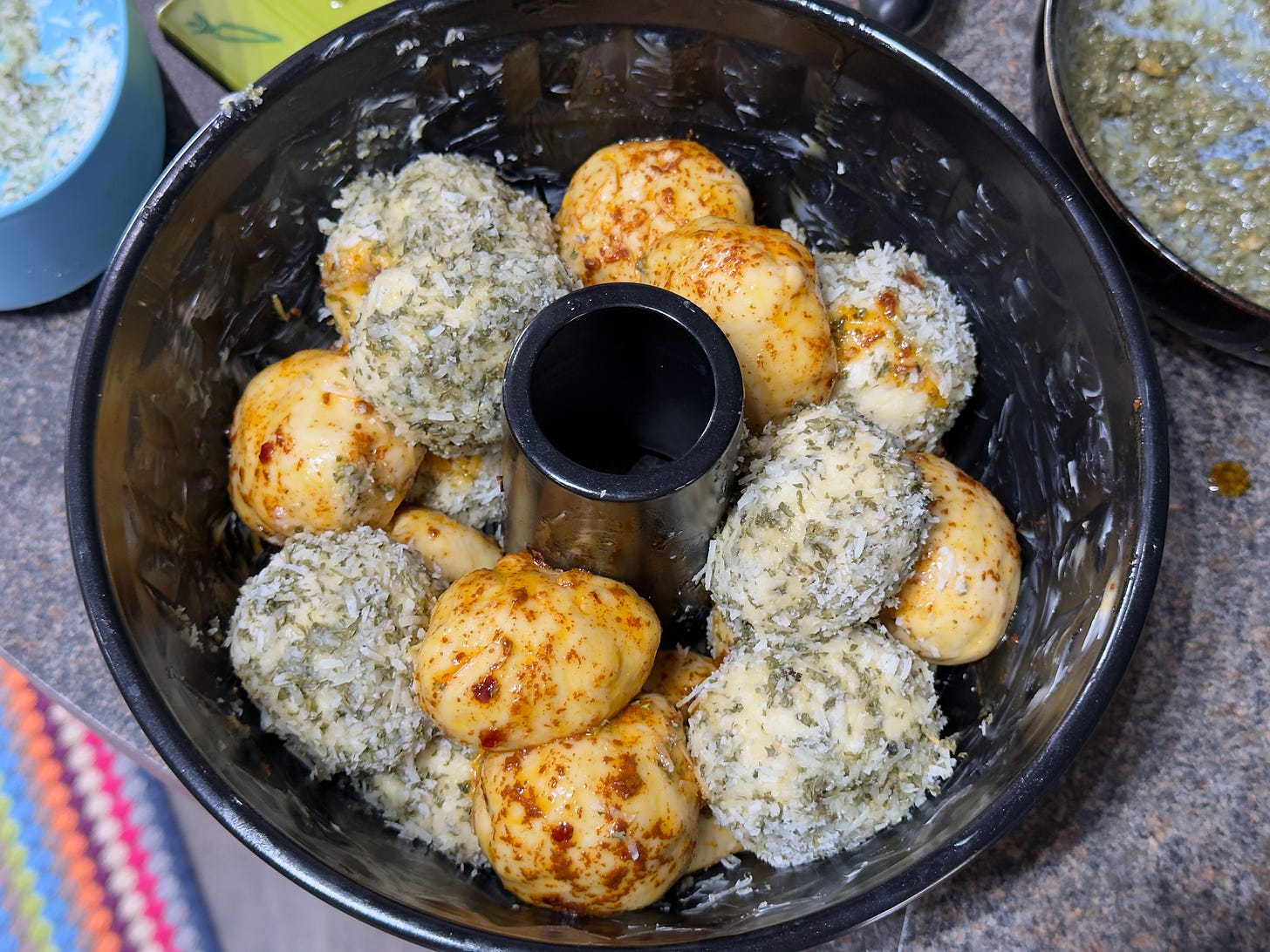 First up this week was the Signature Challenge - a Savoury Monkey Bread. For those who haven’t come across it before, monkey bread is essentially a tear and share ‘loaf’, made up of little dough balls baked together. It’s the kind of bread you would make to be eaten with friends (or let’s be real, demolished single handedly!).