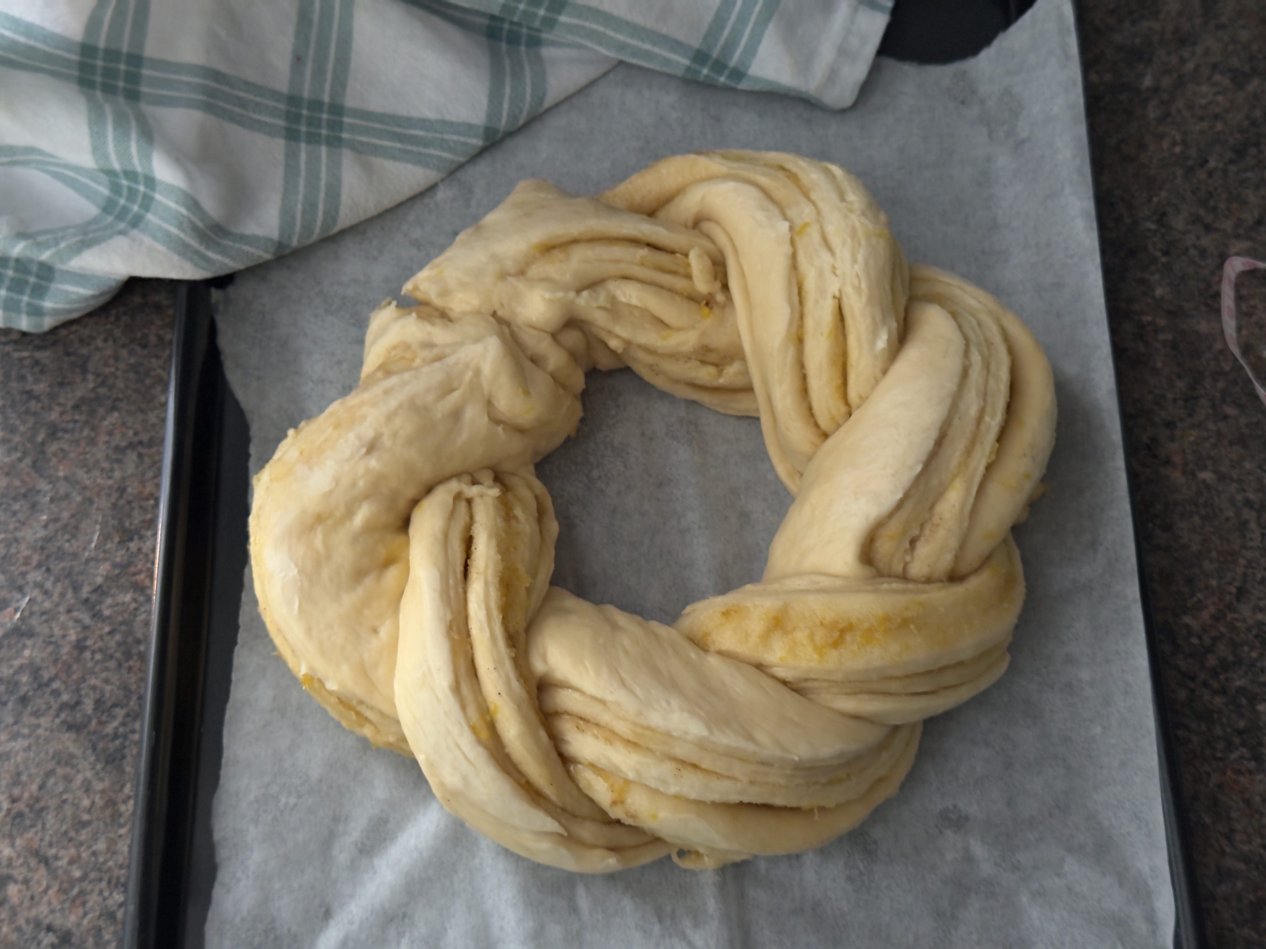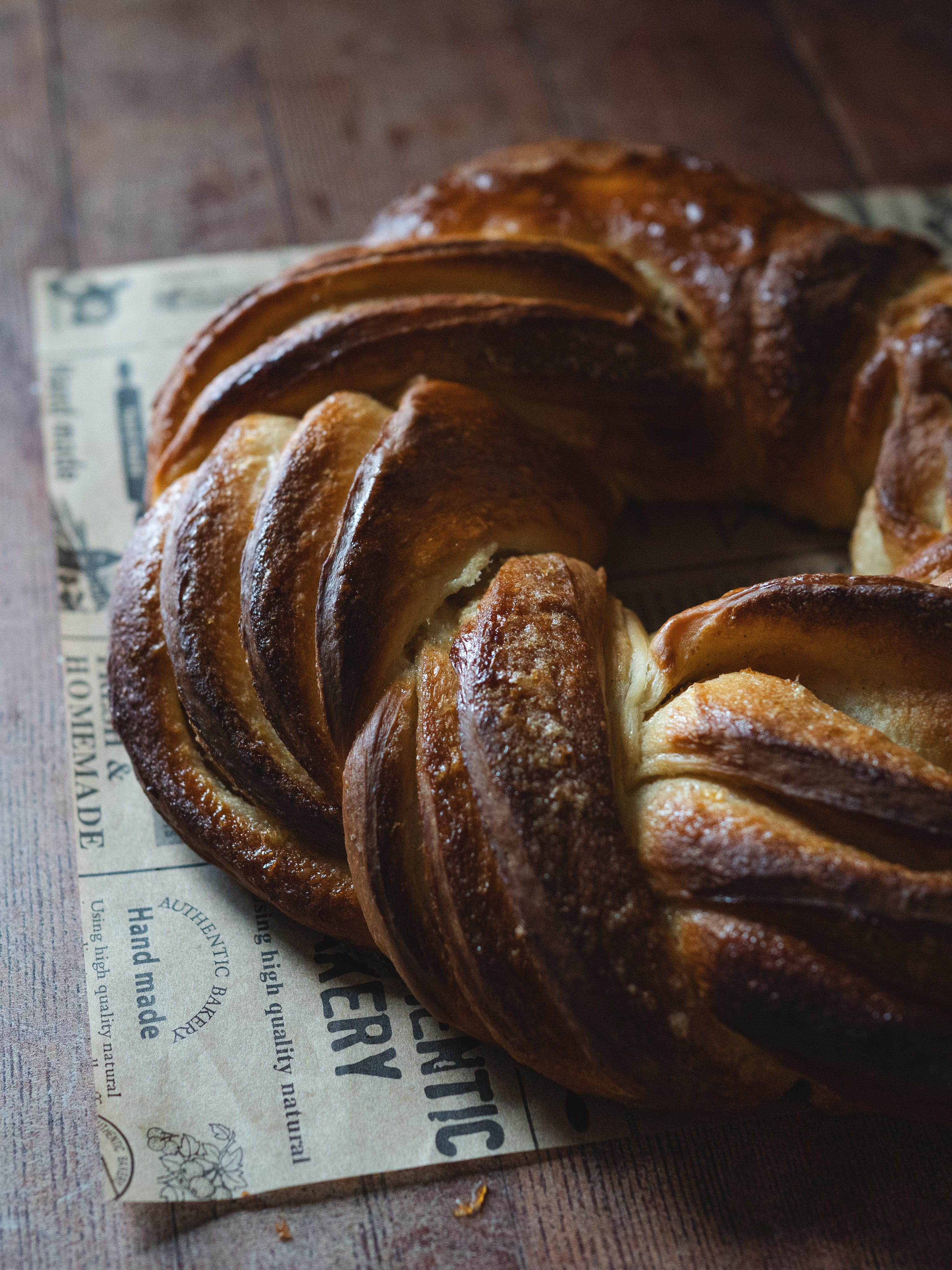 Bottom layer: Cardamom dough with a buttery lemon sugar filling, shaped into a wreath.
